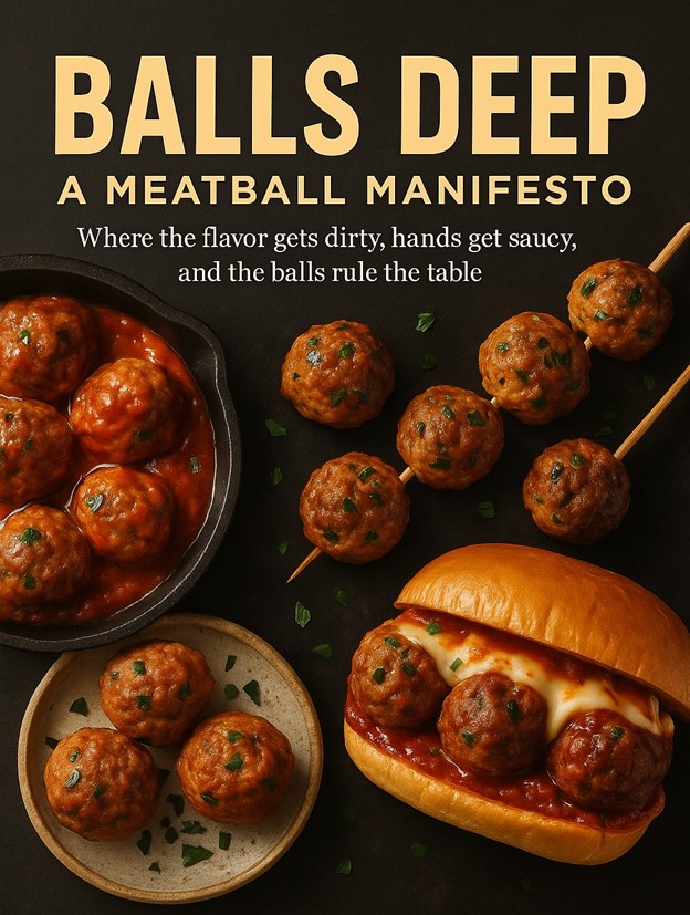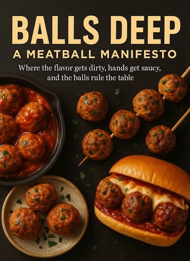 This book may make your Nonna blush, but she’ll still be asking for seconds. Balls Deep is equal parts humor and technique. A cheeky, full-flavored dive into the art of the perfect ball. Inside, you’ll find recipes that span continents and cultures, from classic Italian beef-and-pork blends simmered low and slow to lamb koftas, seafood bites and even dessert “sweetballs.” Each one is built on real culinary foundations: fat ratios, binder structure, caramelization, temperature control and the balance of acid & salt that turns comfort food into something transcendent.