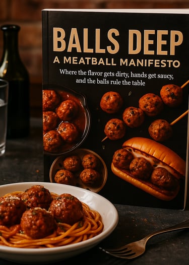 This book may make your Nonna blush, but she’ll still be asking for seconds. Balls Deep is equal parts humor and technique. A cheeky, full-flavored dive into the art of the perfect ball. Inside, you’ll find recipes that span continents and cultures, from classic Italian beef-and-pork blends simmered low and slow to lamb koftas, seafood bites and even dessert “sweetballs.” Each one is built on real culinary foundations: fat ratios, binder structure, caramelization, temperature control and the balance of acid & salt that turns comfort food into something transcendent.
